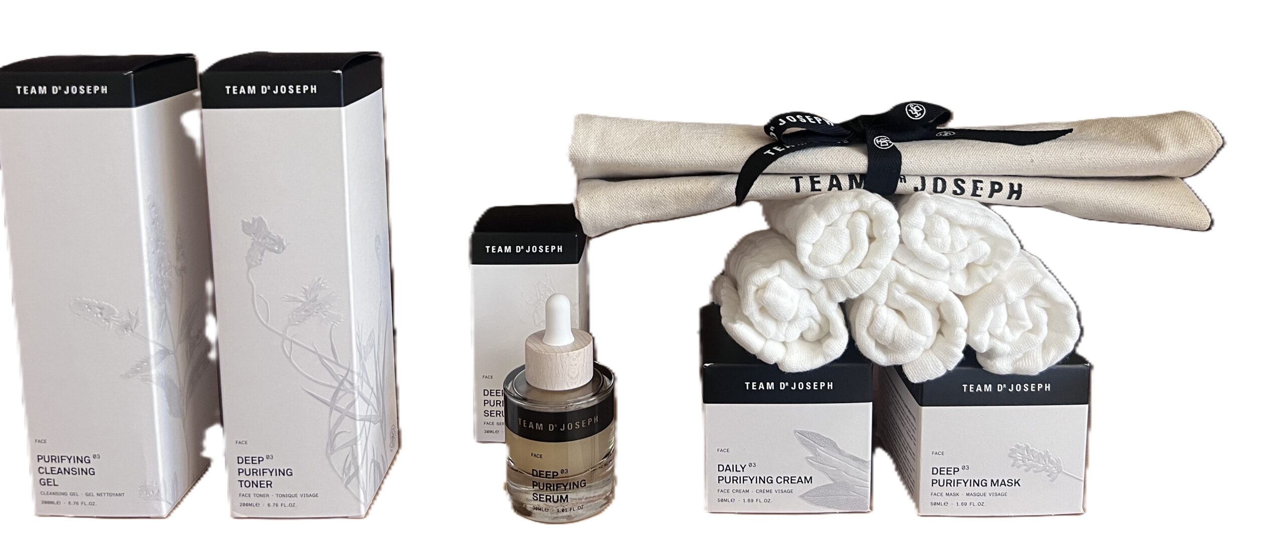 EIN PERFEKT AUFEINANDER ABGESTIMMTES SET! Besteht aus: Purifying Cleansing Gel, Deep Purifying Toner, Deep Purifying Serum, Daily Purifying Cream, Deep Purifying Mask, Beauty Bag, 5x Face Towel 100% Baumwolle (25×25)
